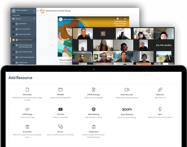 Kursus di WizLearn LMS dapat diatur sebagai sesi tatap muka atau konferensi video atau pembelajaran mandiri online atau bahkan keduanya.
